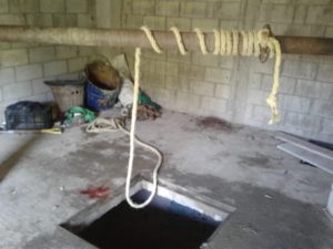 Al lugar arribo la policía ministerial al mando de Rubén Espinoza Chávez más 01 un elemento a bordo de la camioneta Ram blanca doble cabina con placas de circulación TD-6653-E, y el Juez Auxiliar Efigenio Martínez García, en el exterior del pozo ya se encuentran los cuerpos ya sin signos vitales de (+) Fermín Santiago Rojas, integrante del consejo de vigilancia, andaba apoyando para sacar los primeros cuerpos, bajando y ya no salió, y de los que andaban trabajando estaba encargado (+) C. Rene Martínez Pedraza, de 28 años, mismo que es reconocido por su mama la C. Bertilla Martínez Pedraza 43 años y manifiesta que es custodio pero no sabe en cual centro penitenciario estaba laborando, únicamente que estaba comisionado con el Dip. Cándido Ochoa Rojas, y manifiesta un policía municipal que a los otros 2 personas únicamente los conocen por (+) Rosendo N. y (+) Félix N., manifiestan autoridades del lugar que el pozo tiene una profundidad de 10 a 12 metros, y que estaban limpiando con bombas a gasolina, ya que se percibe el olor hasta la parte de afuera,