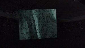 Un hombre fue colgado de un puente en el periférico a la altura de peñasco la madrugada de hoy, el sujeto está en calidad de desconocido ;en el lugar se encontró una cartulina con un narcomensaje dirigido a las autoridades .