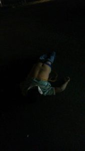 al llegar al lugar se encontró a una persona en el pavimento que vestía pantalón de mezclilla azul.calzón azul.camisa verde con rayas negras al cuello camiseta color blanca y un mecate de color amarillo.zapatos tipo tenis color café quién al parecer lo habían amarraron al Puente pero se rompió el mecate que lo sostenía .