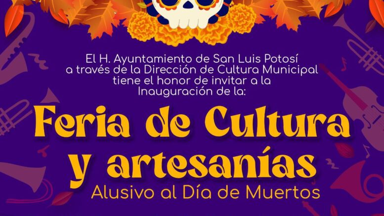 El Gobierno Municipal de San Luis Potosí, a través de la Dirección de Cultura Municipal, invita a la ciudadanía a participar en la Feria de Cultura y Artesanías en conmemoración del Día de Muertos. Este evento se llevará a cabo del 11 al 13 de octubre de 2024 en el patio del Centro Cultural Palacio Municipal, de 10:00 a 19:00 horas.