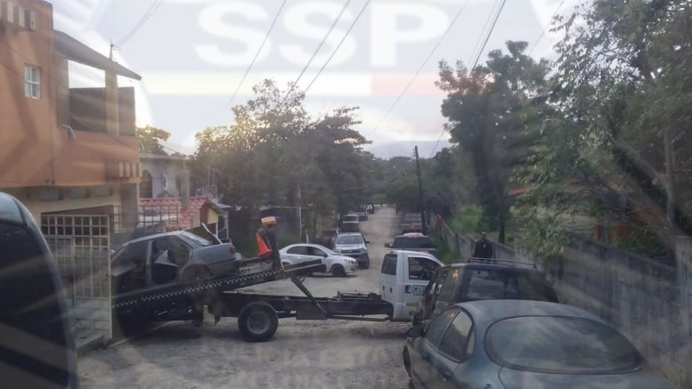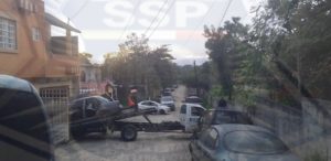 El vehículo fue sacado del interior del domicilio por una grúa y trasladado a los patios de la pensión, se da término a la orden de cateo con personal de peritos y policía de métodos de investigación de la Fiscalía del Estado Zona Huasteca