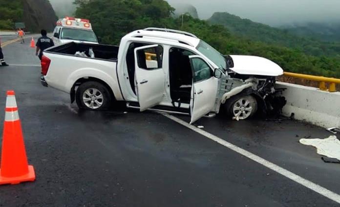 El primer  accidentes ocurrió en el kilómetro 34 del tramo Valles-Rayón, muy cerca de la caseta de Tamasopo, el chofer de una camioneta color blanco de doble cabina, con placas de SLP perdió el control del volante, derrapó y chocó contra el muro de contención del puente.