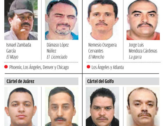 También figuran en la lista de la agencia antidrogas estadounidense Carlos Arturo Quintana, ‘El 80’, y Julio César Olivas Torres, ‘El Sexto’, líderes del cártel de Juárez.