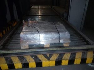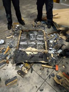Durante inspecciones aleatorias a empresas de paquetería en el Aeropuerto Internacional de la Ciudad de México, en coordinación con personal del SAT México e integrantes de la División de Antidrogas de la Policía Federal de México, con apoyo de equipo no intrusivo se detectaron en el interior de una mesa de madera artesanal ocultos 11 paquetes de presunta metanfetamina.