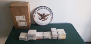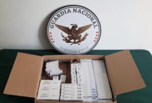 El primer hecho se registró cuando guardias nacionales ingresaron a una empresa de mensajería y detectaron una caja de cartón que al inspeccionarla localizaron varias cajas pequeñas con mil 830 tabletas y 100 mililitros de medicamento controlado que no contaba con la documentación sanitaria correspondiente.