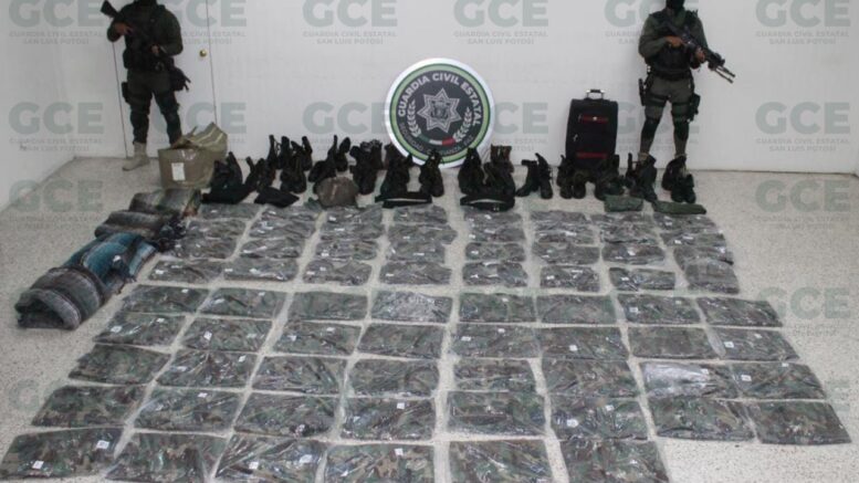 “En Guadalcázar se decomisa y se identifica una gran cantidad de ropa y equipo táctico presuntamente usado por organizaciones delincuenciales. Se han utilizado tecnológicamente los recursos que se tienen por parte del Gobierno del Estado como los drones, elementos de la Guardia Civil patrullando la zona y el apoyo que hemos tenido del Ejército Mexicano y de la Guardia Nacional y esta estrategia no parará” dijo