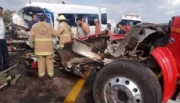 En el sitio, conocido como “La Curva del Muerto”, se impactaron de frente una grúa que transportaba una perforadora de pisos, una camioneta de pasajeros y un auto compacto.