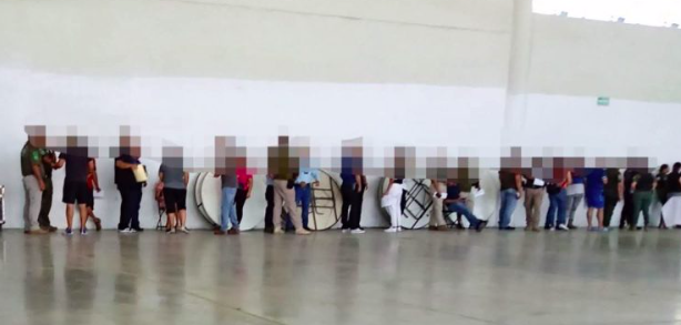 Las evidencias muestran largas filas de oficiales esperando turno frente a un módulo cuya apariencia es similar a los instalados anteriormente en otras dependencias gubernamentales, como el Sistema Educativo Estatal Regular (SEER), donde también se ha señalado la presencia de prácticas similares de afiliación obligatoria.