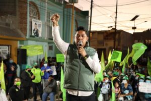 Entre las banderas Rojiverdes del Partido Verde Ecologista de México (PVEM) y Partido del Trabajo (PT) y cientos de carteles con muestras de afecto, “El Pollo” Gallardo dijo que erradicará el burocratismo de los institutos antes citados, así como de la secretaría de Cultura, para que amplíen sus servicios a las y los jóvenes de todo el Estado, pues actualmente sus servicios son excluyentes y limitados.