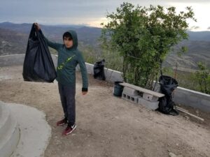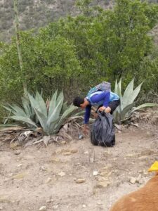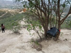 Hoy por la mañana este personaje realizo una gran labor motivado en lo sucedido ayer, se dedico a recoger la basura que encontraba durante su recorrido hacia la cima del cerro, dejando en distintos puntos bolsas para que quienes acudan a este sitio depositen todo residuo y no lo lanzen sobre la flora de alrededores.