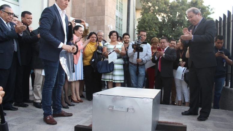 Como parte de los festejos del “Día Nacional del Ministerio Público”, el Fiscal General del Estado, Federico Garza Herrera y personal de la institución depositó la “Cápsula del Tiempo” a un costado del acceso al edificio de la Fiscalía General del Estado de San Luis Potosí (FGESLP), la cual será abierta en el año 2068.