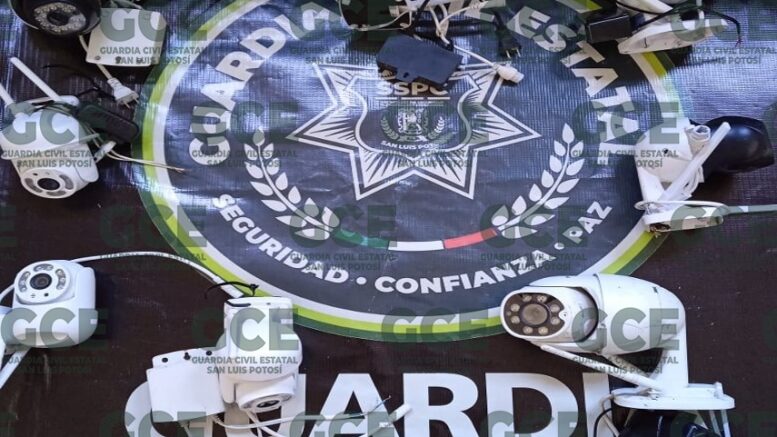 Tamasopo, S.L.P.- Como resultado de las labores de inteligencia y vigilancia, así como de las acciones en el Plan Integral de Seguridad contra la delincuencia organizada, agentes de la Guardia Civil Estatal (GCE) desmantelaron una red de videovigilancia criminal en diversos puntos de Tamasopo, asegurando 8 videocámaras.