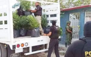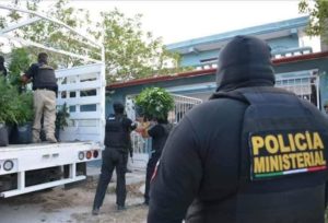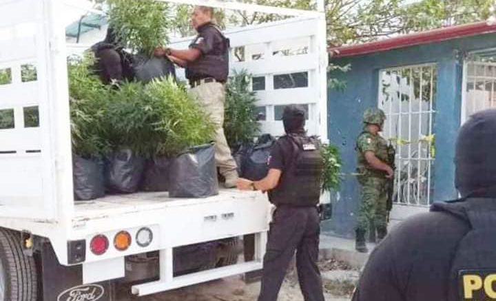 Encapuchados, y con equipo táctico elementos de la Policia Ministerial, Marina, Militar y Estatal, acudieron al predio de la Sm235, manzana 11, calle 73, en donde se hallaron varias bolsas negras que eran usadas a modo de maceta y tenían plantas de marihuana, además, se hallaron semillas, e implementos que eran usados para la siembra y lámparas para invernaderos.