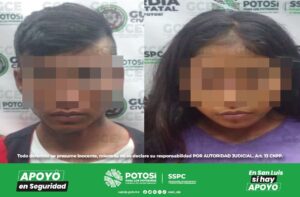 Fabián “N”, de 23 años de edad, y Belinda “N”, de 19 años, fueron detenidos en el operativo. Se les confiscó un arma de fuego larga calibre 5.56, cinco cargadores y 62 cartuchos útiles, así como dos chalecos y dos paneles balísticos, dos pares de botas, dos pantalones y un pañuelo, además de 27 artefactos “poncha llantas”.