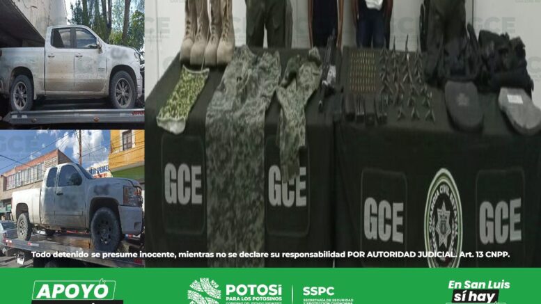 Los hechos ocurrieron en la carretera Charcas-Santo Domingo, en el kilómetro tres, cuando las autoridades de la GCE observaron a un hombre y una mujer a bordo de dos camionetas que exhibían letras alusivas a una supuesta organización delictiva. Al verse descubiertos, el hombre disparó un arma de fuego contra los elementos de la GCE, quienes respondieron a la agresión y lograron desarmarlo mediante las técnicas de incursión y seguridad adecuadas.