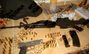 En el interior descubrieron un rifle AR-15 con 12 cartuchos calibre .223 y una pistola calibre 9 mm., con 15 balas