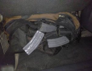 En la inspección del vehículo con placas del estado de Nuevo León, en la parte trasera y en unas mochilas se encontraron dos armas largas tipo R-15, tres cinturones tácticos porta cartuchos, un chaleco antibalas, 23 cargadores abastecidos con 440 cartuchos calibre .223, tres tirantes tácticos.