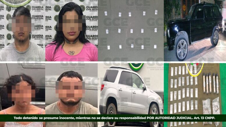 San Luis Potosí, S.L.P., 8 de septiembre de 2025. — Como parte de los operativos de seguridad implementados en distintos municipios del estado, elementos de la Guardia Civil Estatal (GCE) informaron sobre la detención de cuatro personas presuntamente vinculadas a actividades relacionadas con la posesión y posible comercialización de sustancias nocivas para la salud.