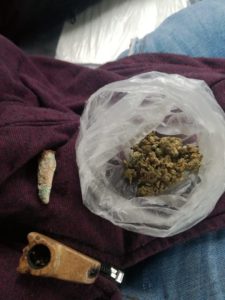 Al tener contacto con quien dijo llamarse Jesús N. de 15 años, los oficiales lo cuestionaron sobre su actitud y al no dar respuesta, aventó al piso un envoltorio en hoja blanca de papel, por lo que le dieron alcance y comprobaron que expedía aliento a marihuana; al abrir la hoja blanca de papel encontraron hierva seca de color verde, con características similares a la marihuana, por lo que se leyeron sus derechos y se trasladó a las instalaciones de la Barandilla, ambos por la violación al art. 10, fracc. VIII del Bando de Policía y Gobierno