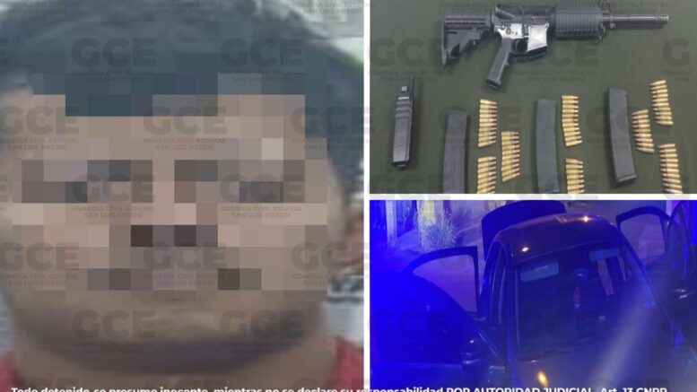 Matehuala, S.L.P. – La Guardia Civil Estatal (GCE) informó sobre la detención de un hombre que presuntamente disparó contra los agentes durante un operativo de seguridad en la colonia Hidalgo del municipio de Matehuala.