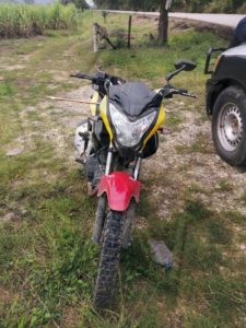 Dentro de los patrullajes de seguridad y vigilancia realizados sobre el tramo Estatal Rascón-Crucero el Vergel, efectivos dela policía estatal le solicitaron al tripulante de una motocicleta marca Italika ft200, modelo 2015, color amarillo con negro, con las placas JJW-0076 de Texas, debido a que el conductor no portaba casco, por lo que los agentes le solicitaron se detuviera.