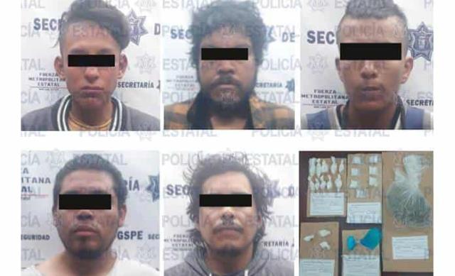 Uno de los hechos ocurrió en la colonia División del Norte, donde los elementos de seguridad detuvieron a Nicolás E., de 24 años de edad; Guillermo S., de 35 años de edad; Víctor H., de 20 años de edad; Ignacio R., de 27 años de edad y Luis H., de 29 años de edad, después de que se les aseguraron aproximadamente 42 gramos de marihuana y 21 dosis de la droga sintética “cristal”.