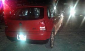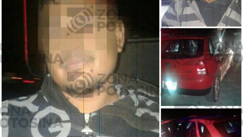 En el marco del dispositivo “Soledad Seguro”, agentes municipales que realizaban acciones de sobrevigilancia y prevención del delito, observaron sobre la carretera a Matehuala un vehículo Volkswagen Pointer color rojo que se desplazaba a velocidad inmoderada, marcándole el alto al conductor a la altura del entronque a la comunidad de La Tinaja, ya que sus características coincidían con un vehículo utilizado en un robo a comercio minutos antes.