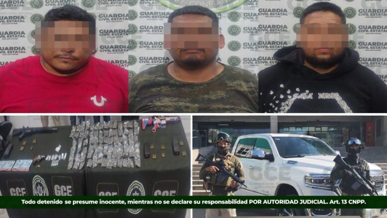 VILLA DE REYES, S.L.P. – En una operación de alto impacto derivada de trabajos de inteligencia, la Guardia Civil Estatal (GCE) logró la captura de tres presuntos integrantes de una célula criminal vinculada al homicidio de dos personas, entre ellas el individuo conocido como “Pablo Carreta”. La detención se llevó a cabo tras un enfrentamiento armado en la colonia El Santuario, donde los oficiales repelieron una agresión directa.