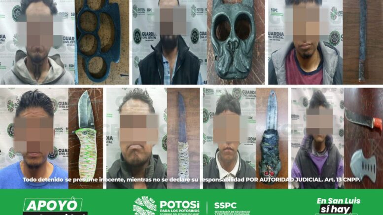 S.L.P.- Trabajos preventivos, efectuados tanto en la capital como en su zona conurbada, derivaron en la detención de siete hombres, quienes fueron sorprendidos por elementos de la Guardia Civil Estatal (GCE) en probable posesión de armas punzocortantes y objetos prohibidos.