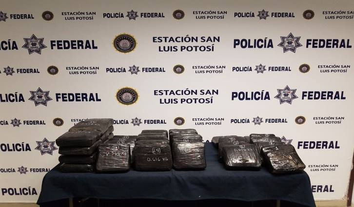 Elementos de la policía federal  detuvieron sobre el entronque de la carretera San Luis Potosí- Matehuala en San Luis Potosí, detuvimos a una persona que transportaban en su vehículo 39 paquetes con presunta droga conocida como cristal.