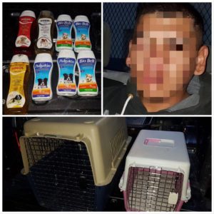 El presunto llevaba consigo una mochila la cual en su interior llevaba ocho botellas de shampoo anti – pulgas, los cuales fueron robados del establecimiento.