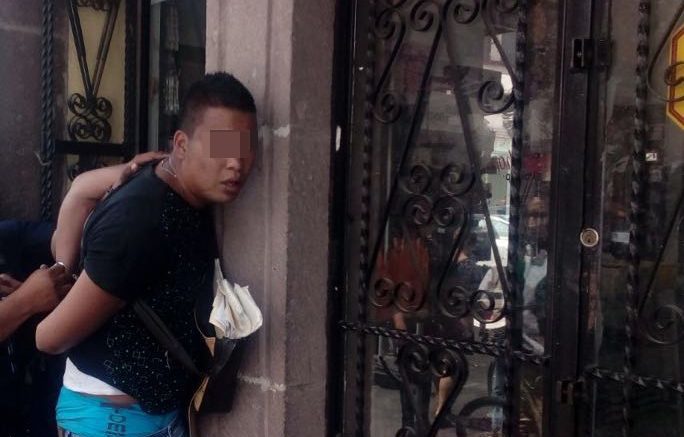 Un sujeto fue detenido por elementos de Seguridad Pública municipal por oficiales del Agrupamiento de Vialidad, permitió la detención de un presunto delincuente que se dedicaba al robo de transeúntes en las calles del Centro Histórico; se le aseguraron dos cuchillos con los que amenazaba a sus víctimas.