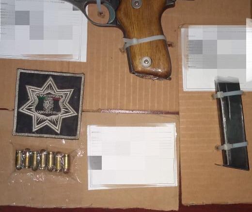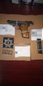 El presunto al verse sorprendido accedió a una inspección física, en donde le fue encontrada fajada a la cintura un arma de fuego calibre.380, además de siete cartuchos útiles.