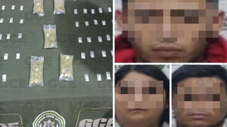 Santa María del Río, S.L.P. — En una acción más encaminada a fortalecer la seguridad y combatir delitos contra la salud, elementos de la Guardia Civil Estatal (GCE) detuvieron a tres personas en el municipio de Santa María, tras ser sorprendidas con diversas sustancias ilícitas.