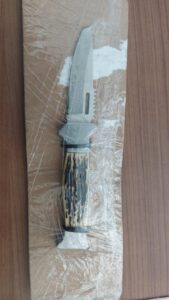 Se continúa con la inspección física de quien se identificó como Oscar de 27 años de edad detectando que traía una navaja con cacha en color hueso.