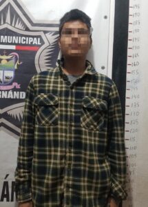 El sujeto identificado con el nombre de Edgar Alexander O., de 19 años de edad, con domicilio en el ejido de Llanitos, fue sorprendido el día de ayer, por elementos de la Unidad 033, cuando al realizar un recorrido de seguridad y vigilancia, lo detectaron en forma sospechosa, trasladandose a bordo de una una motocicleta marca Italika,l que carecía de placas de circulación, siendo este último motivo por lo que se le marcó el alto, en calle Juárez y Mina de la cabecera Municipal de Ciudad Fernández.