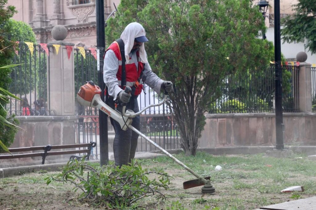 Estuvieron presentes trabajadores de la Secretaría de Bienestar Municipal, así como de las direcciones de Servicios Municipales, Gestión Ecológica y Manejo de Residuos, Comercio y la Secretaría de Seguridad y Protección Ciudadana, quienes, además de intervenir en las áreas verdes, continuarán su recorrido desde la calle Damián Carmona hasta Juan del Jarro, y de Av. de la Paz hasta el 20 de Noviembre, realizando labores de limpieza profunda.