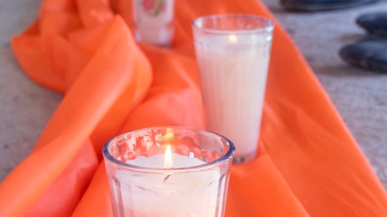 Formaron un lazo con un listón color naranja, símbolo universal de la lucha contra la violencia de género y se encendieron veladoras en memoria de las mujeres que han perdido la vida a causa de la violencia