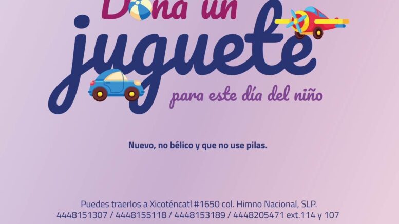 SLP.- El Sistema Municipal para el Desarrollo Integral de la Familia (SMDIF) invita a la población en general a donar un juguete en beneficio de niñas y niños de la Unidad Básica de Rehabilitación de Maravillas.