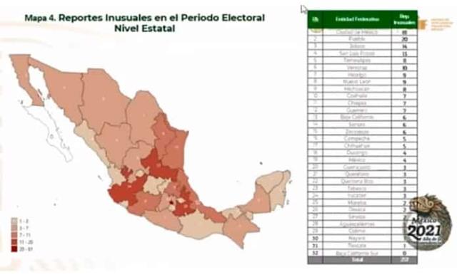 Santiago Nieto reveló que en el mapa de riesgo de estas operaciones vulnerables, la Ciudad de México fue la entidad que mayor número de reportes generó, con 81. Puebla le sigue con 20 casos. En Jalisco hubo 14 reportes y en cuarto sitio se ubicó San Luis, con 13 operaciones sospechosas.