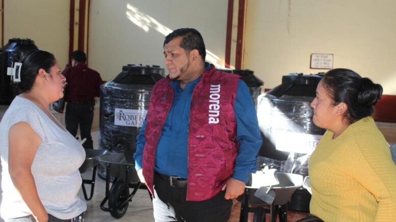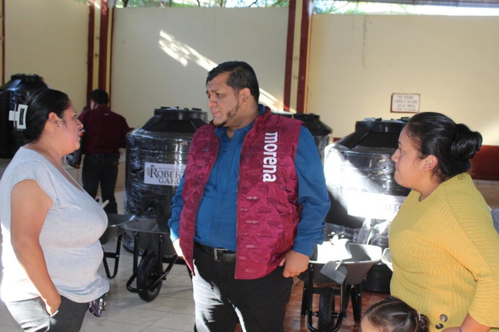 Rayón, S.L.P.– Como parte de su compromiso con las familias del campo potosino, el diputado José Roberto García Castillo, coordinador del Grupo Parlamentario de Morena en el Congreso del Estado, encabezó la entrega de tinacos, calentadores solares, láminas e implementos agrícolas a campesinos y campesinas del municipio de Rayón.