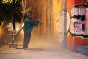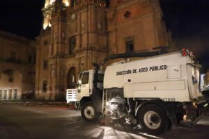 Los trabajos se realizan en conjunto entre las direcciones de Servicios Municipales, Gestión Ecológica, Comercio y Cultura, junto con la Unidad de Gestión del Centro Histórico: “Nos decidimos a venir a limpiar el Centro Histórico de la ciudad, que prácticamente abarca la Plaza de Armas, la parte de Independencia, Galeana, una parte de Avenida Universidad, la Plaza del Carmen, la de San Francisco, en fin, lo que abarca todo el recorrido de la Procesión del Silencio”, explicó el alcalde.