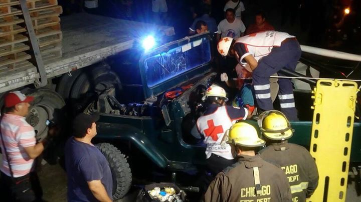 la noche de este miércoles se repirta un accidente con dos personas prensadas frente al Cobach 24, en ejército Mexicano y Vicente C. Salazar, Bomberos y cuerpos de auxilio trabajan en el lugar,.