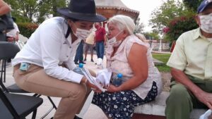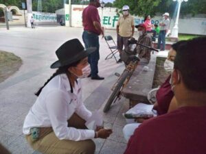 Dolores Morales dialoga coon habitantes del Ejido de San Marcos de la Cantera