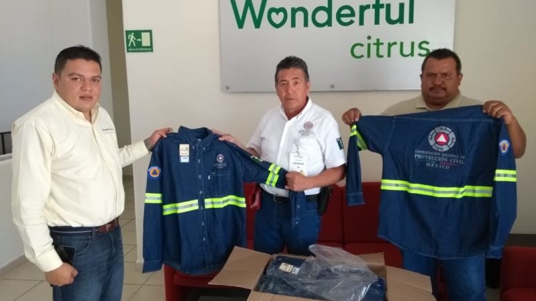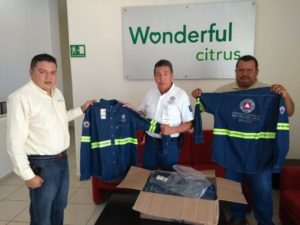 Como parte de sus acciones de apoyo a la comunidad e instituciones de auxilio, la empresa Wonderful Citrus la mañana de este martes, hizo una donación a la Dirección de Protección Civil Municipal de Ciudad Valles de 60 camisas de mezclilla de manga larga con reflejantes, para que sea utilizada por el personal de esta dependencia.