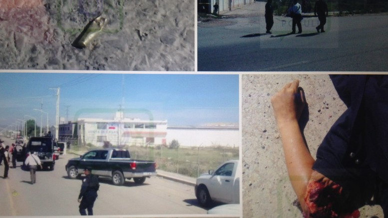 los hechos se registraron esta tarde  en la cercanías de la carretera a peñasco cuando elementos de la dirección de seguridad pública municipal fueron avisados de dos camionetas Suburban una color roja y otra color negro) las cuales traían personas armadas en su interior ;tres uniformados a bordo de la patrulla número  3250 de la policía municipal de San Luis Potosí  Llegaron al auxilio y al tenerlos a la vista fueron recibidos con ráfagas de AK47 hiriendo a dos de los tres tripulantes para darse a la fuga del lugar rumbo al municipio. De Soledad de Graciano Sánchez.