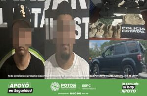 El Naranjo, S.L.P.- Ante la reacción inmediata a situaciones que vulneren la paz pública de las familias potosinas y sus visitantes, oficiales de la Guardia Civil Estatal (GCE) detuvieron a dos supuestos criminales después de ser sorprendidos usurpando funciones policiales; resultado de ello fue gracias a los dispositivos implementados de manera constante en la región Huasteca.