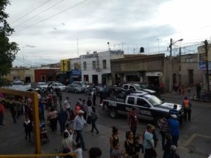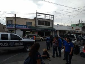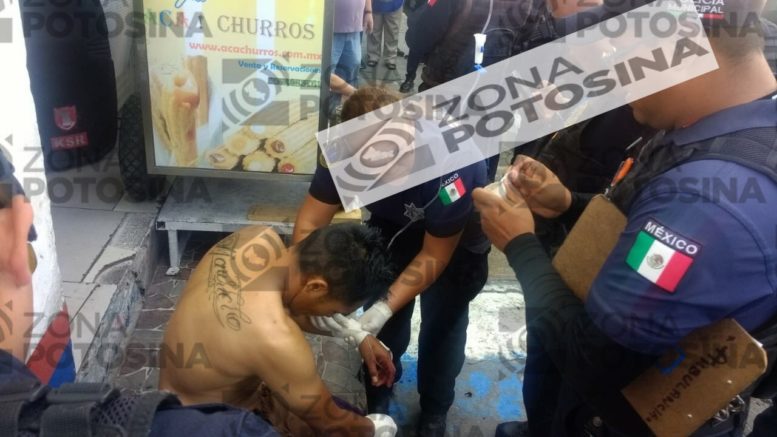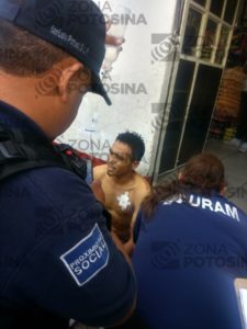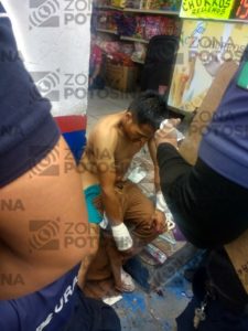 La agresión ocurrió en Pedro Montoya esquina con 16 de Septiembre, por lo que el instinto de las víctimas fue correr rumbo a Reforma quedándose frente a un establecimiento que se ubica en la entrada del “Mercado República” hasta donde llegó el auxilio médico y policial.