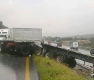 Testigos presenciales dieron a conocer que el chofer del trailer intentó frenar su unidad en una de las colinas perdiendo el control al derrapar una de las plataformas que quedo obstruyendo los dos carriles.
