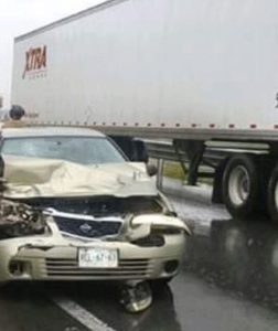 Dos personas resultaron lesionadas en un choque de un trailer full que perdiera el control al fallar los frenos en pavimento mojado.